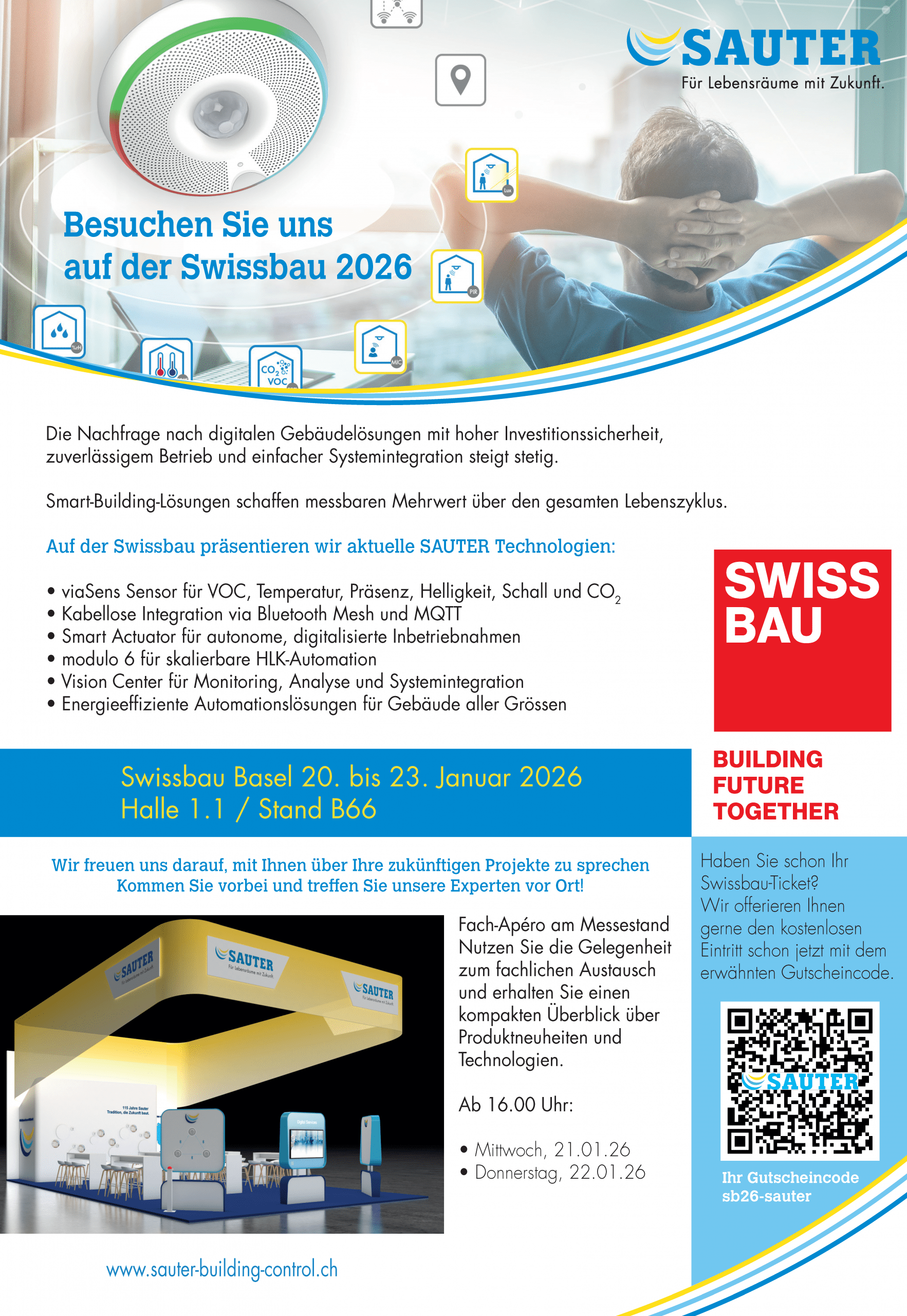 Die Nachfrage nach digitalen Gebäudelösungen mit hoher Investitionssicherheit, zuverlässigem Betrieb und einfacher Systemintegration steigt stetig. Smart-Building-Lösungen schaffen messbaren Mehrwert über den gesamten Lebenszyklus. Auf der Swissbau präsentieren wir aktuelle SAUTER Technologien.